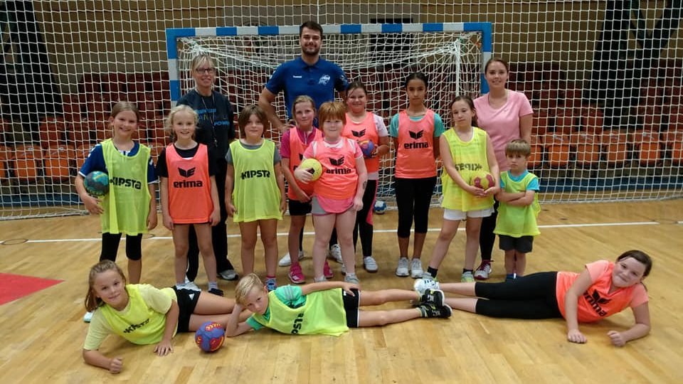 Der Spieler aus unserer ersten Männermannschaft nahm sich die Zeit den Kindern die Grundlagen des Handballs zu zeigen.