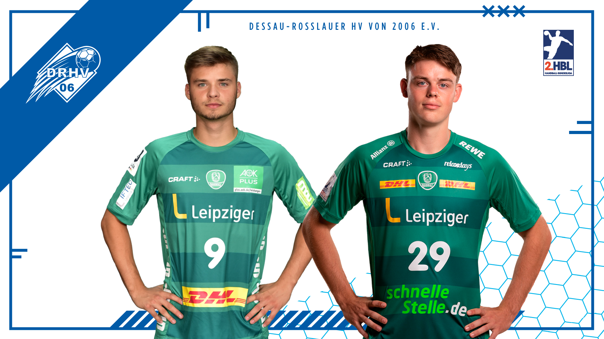 Der Dessau-Roßlauer HV verstärkt sich ab sofort mit den beiden Talenten Joshua Saleh (Rechtsaußen) und Nicolas Neumann (Linksaußen) vom SC DHfK Leipzig. Beide Spieler werden mit einem Zweitspielrecht ausgestattet und werden noch diese Woche in Dessau-Roßlau erwartet.
